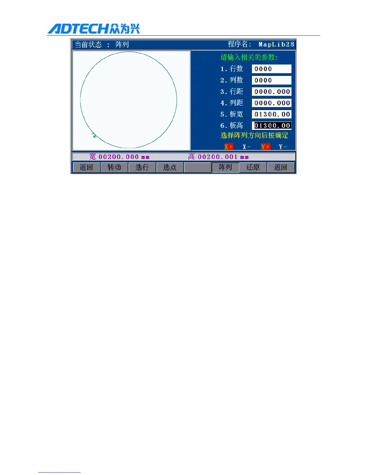 Press [X+], [X-], [Y+], [Y-] to move cursor to the direction for array, select the direction and then press [OK] to