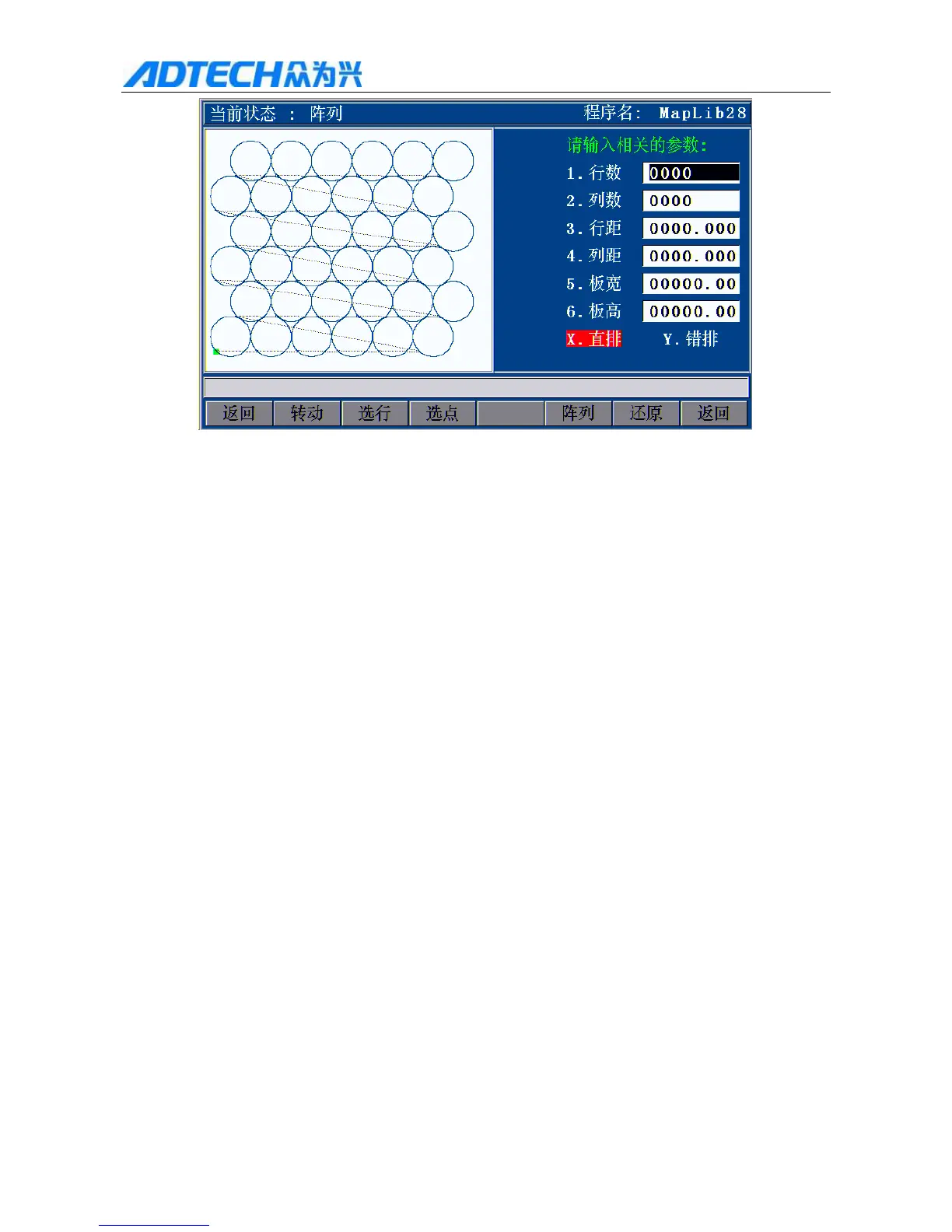 Return / Turn / Select line / Select point / Array / Restore / Return