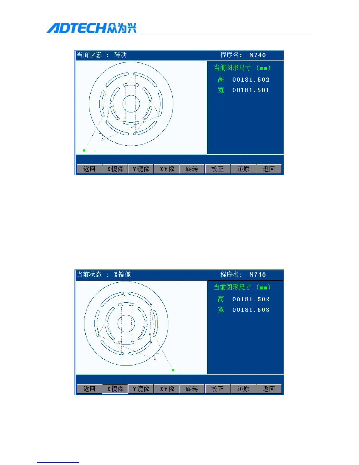 Return /X X mirror / Y Y mirror/ XY XY mirror / Rotate / Correct / Restore