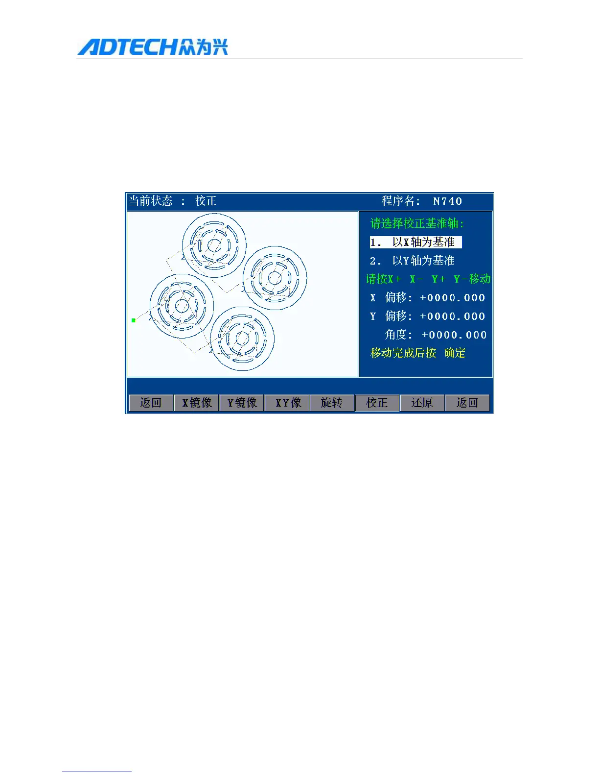 Press [X+][X-][Y+][Y-] to move the torch, and the system will calculate the angle automatically. The