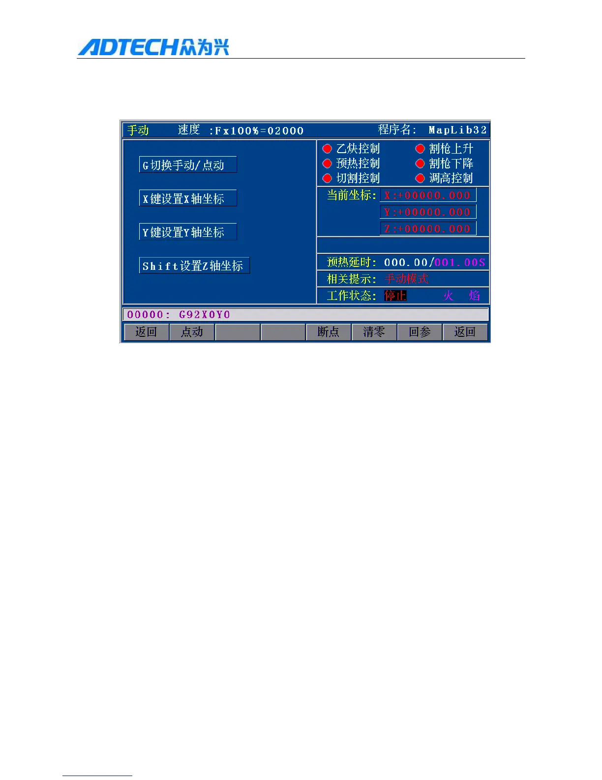 In the main menu, press [F1] (Auto) [F2] (Manual) to enter Manual interface: