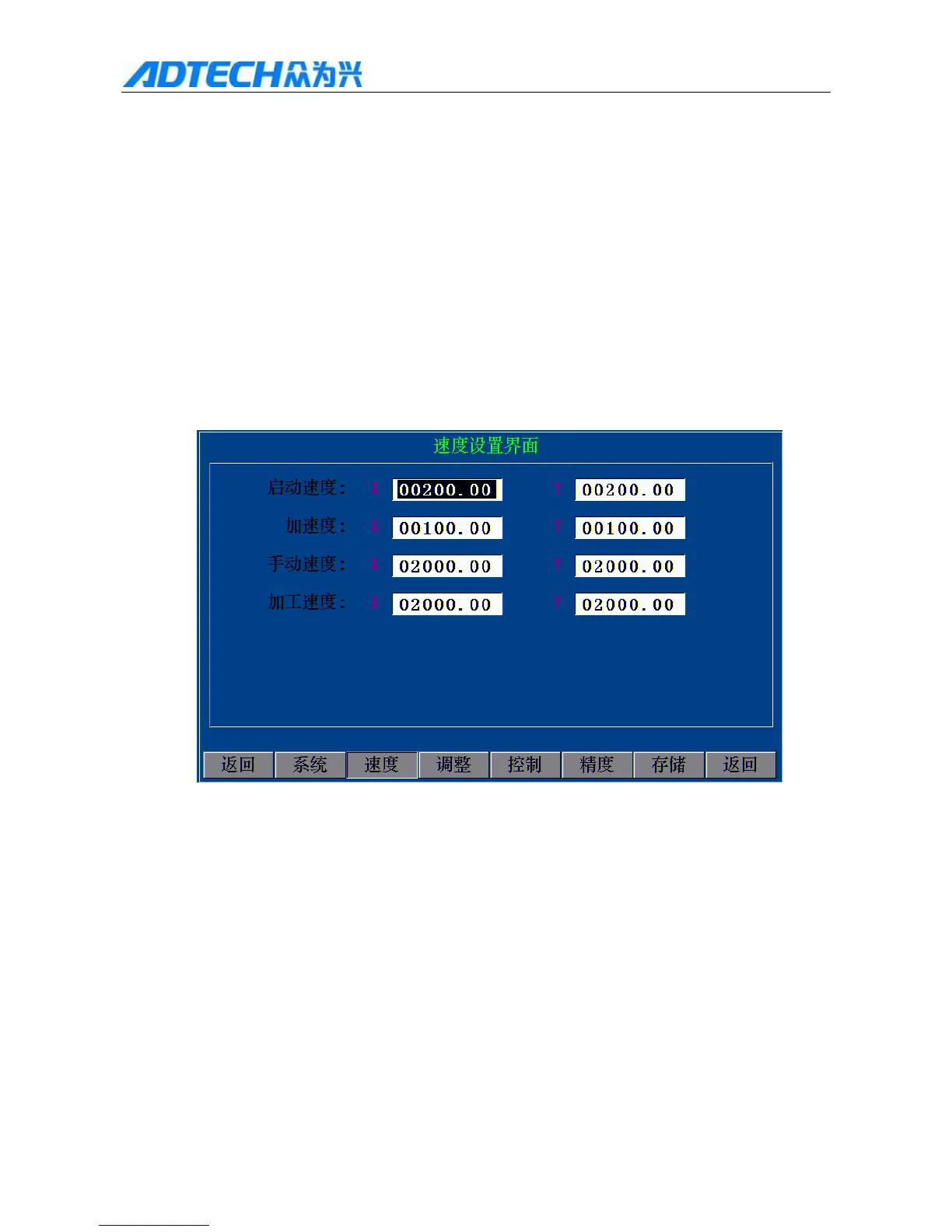 speed, manual speed, acceleration and deceleration.