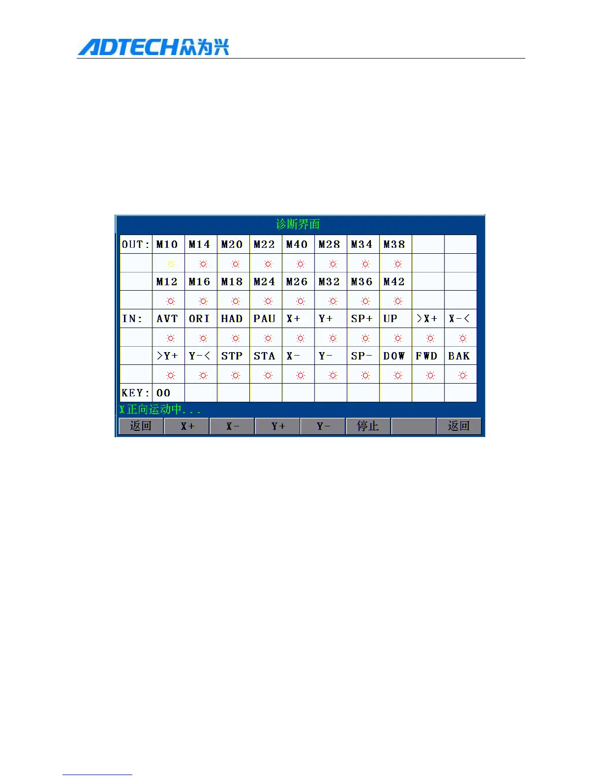 Press [F4] to test the reverse rotation of X axis