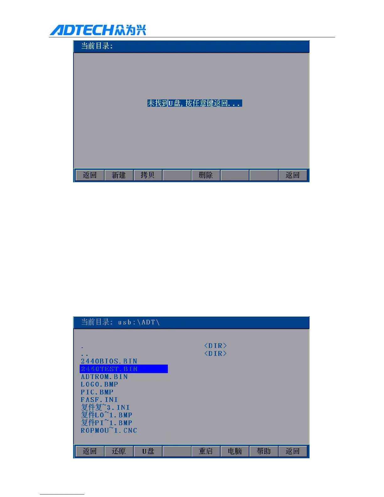 [F6] to enter the upgrade interface, and press [F2] to show the interface in Fig. 6.3.1 if the USB disk isn’t