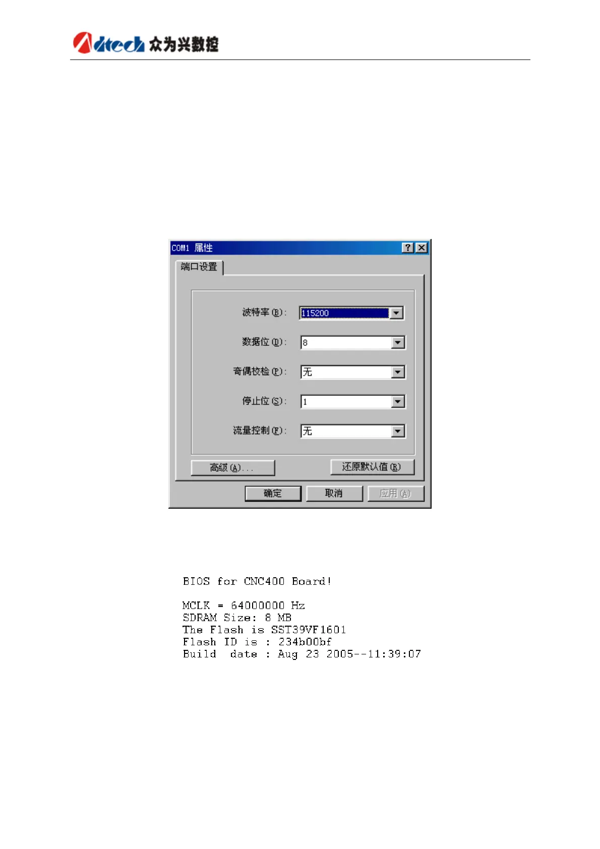 Open WINDOWS super terminal (refer to related data for super terminal) and set the serial port as