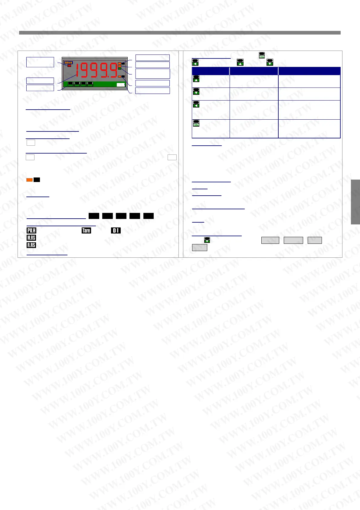 z Max/Mini Hold indication: 2 square orange LEDs