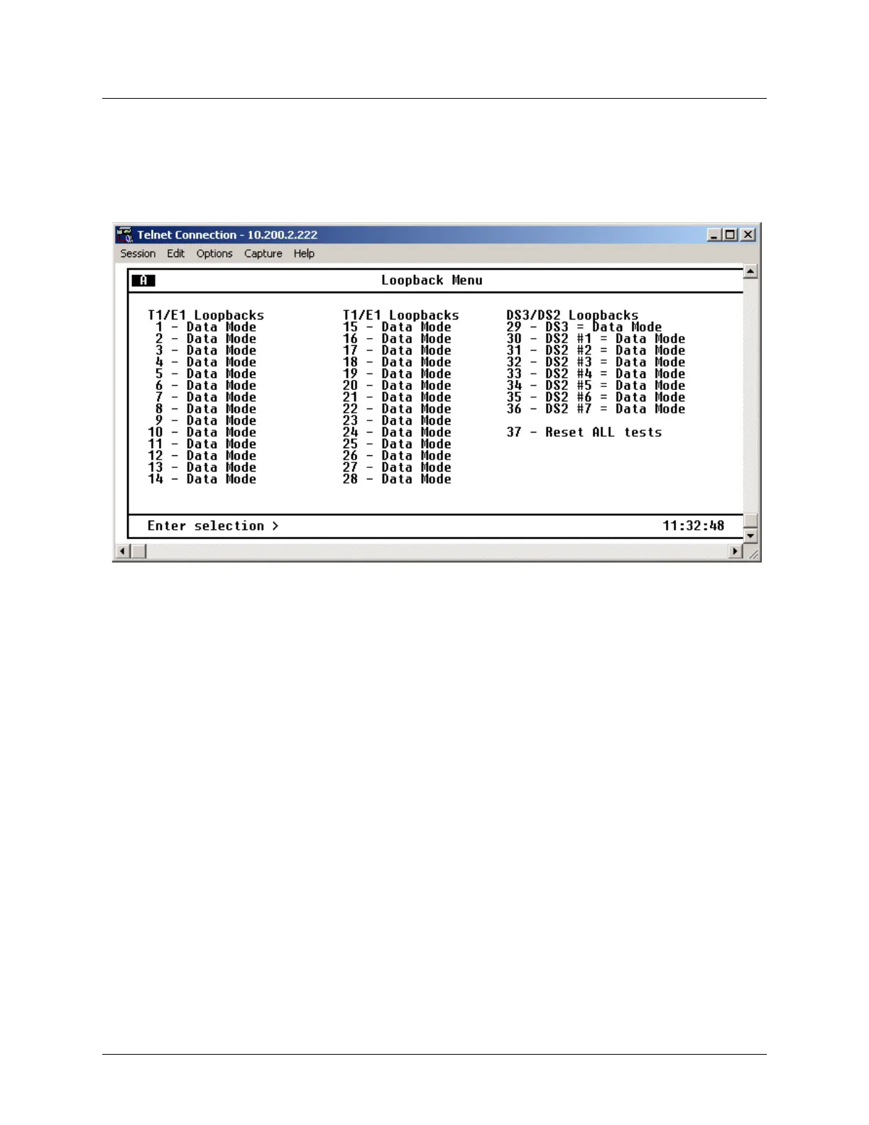 Loopback Menu. Refer to Section 6, Loopbacks for more detailed information.