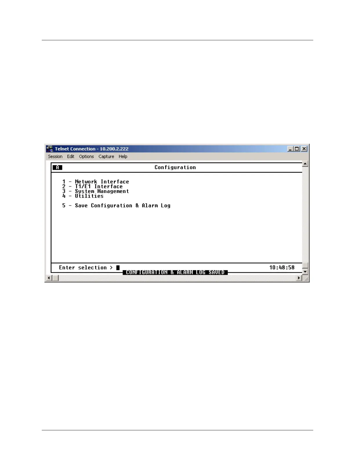When the selection is made, a response is displayed on the Save Configuration and Alarm menu. See