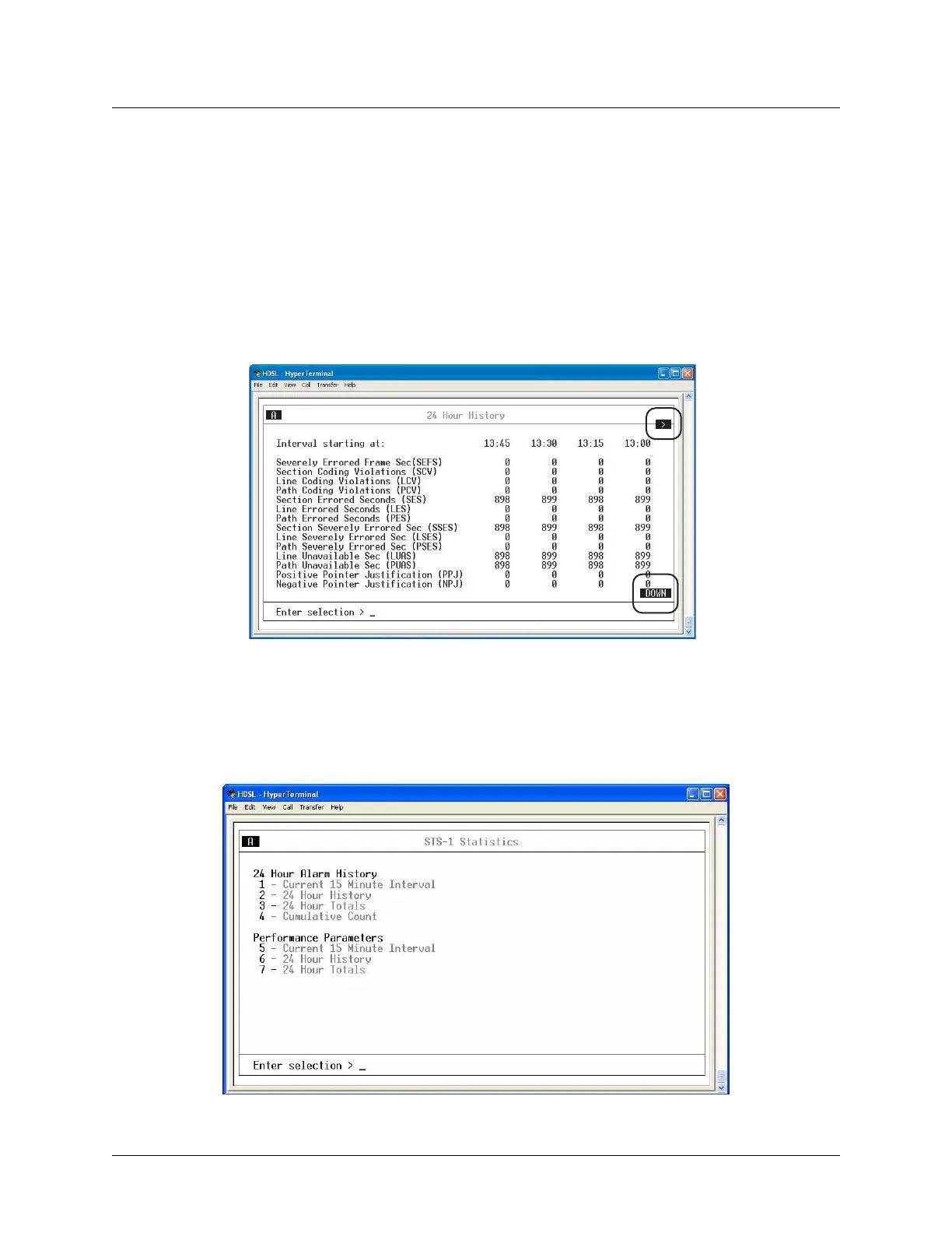 This menu provides submenus for alarm history and performance parameters (see Figure 5-3).