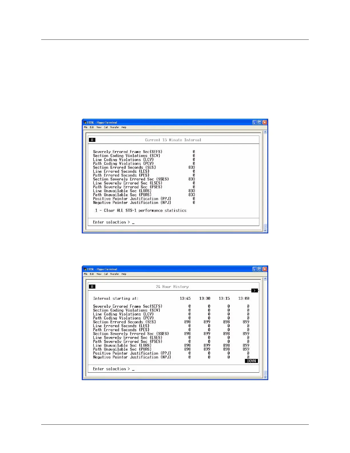 Figure 5-7. Local STS-1 Performance Parameters (24 Hour History)