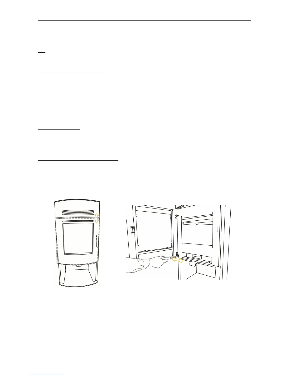 access to the top of the wood burning stove. Cleaning of the inside of the wood burning stove and the flue