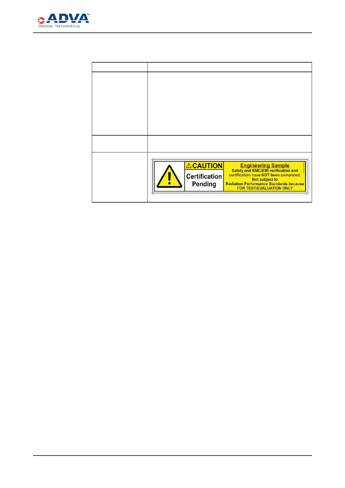 Data on Label Information about pending safety and EMC/EMI verification and