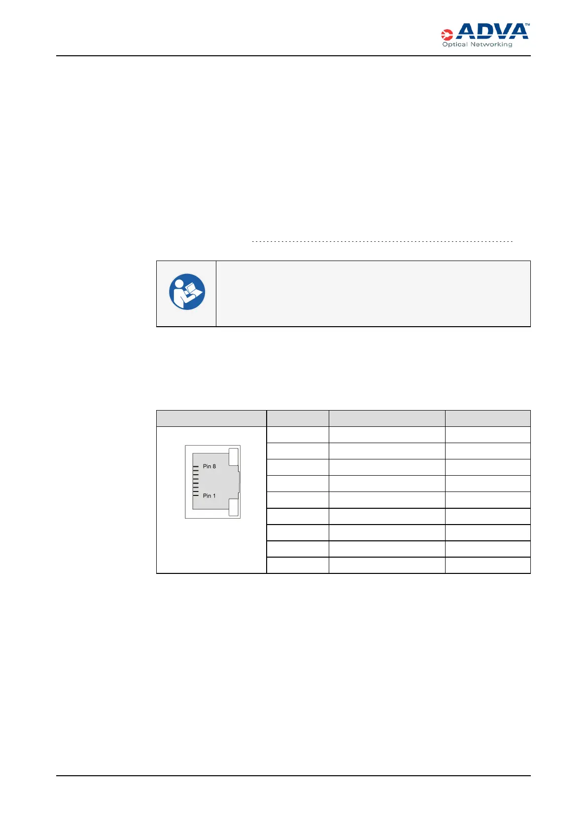 Adva 3000R7 - Port Pinouts; Ethernet Pinouts