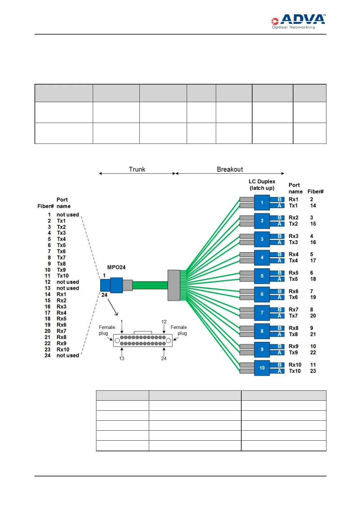 The following table details the breakout cables available from ADVA Optical Networking.