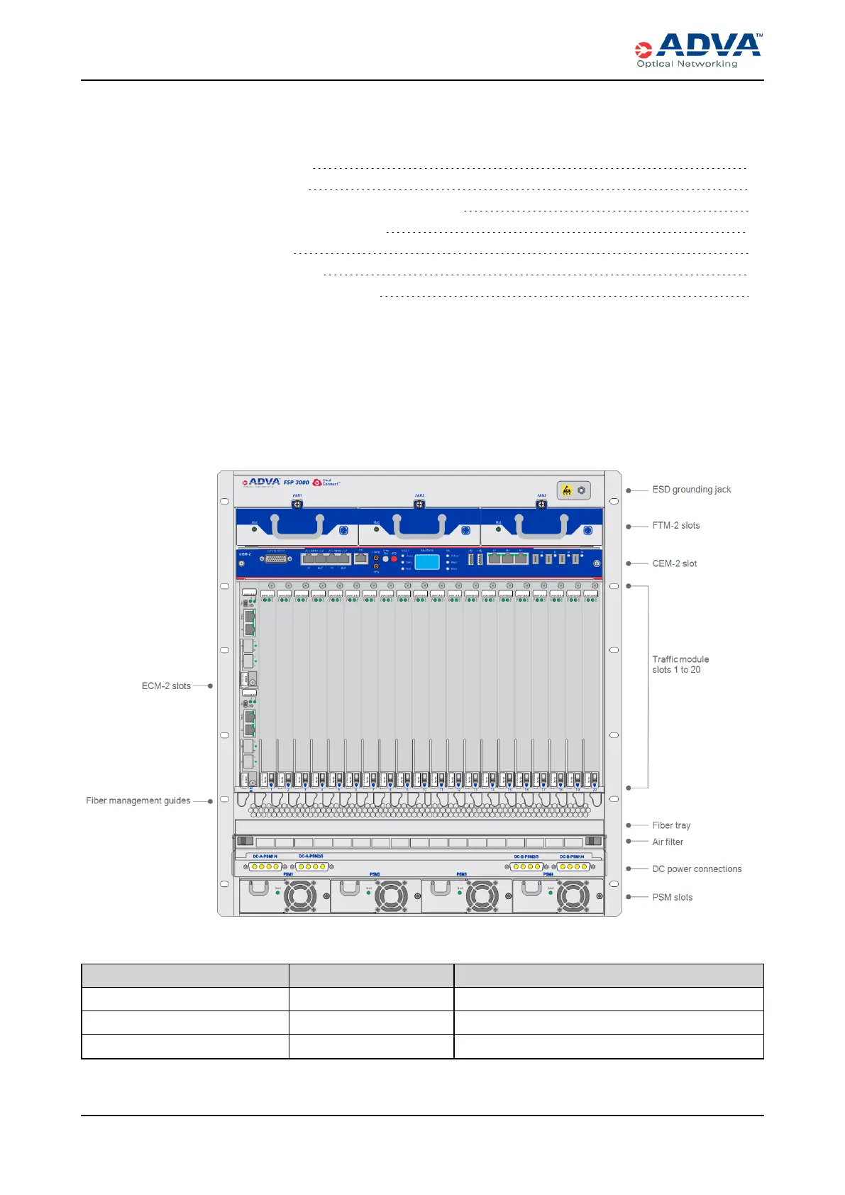 configurations. This shelf accommodates optical traffic and infrastructure modules, as
