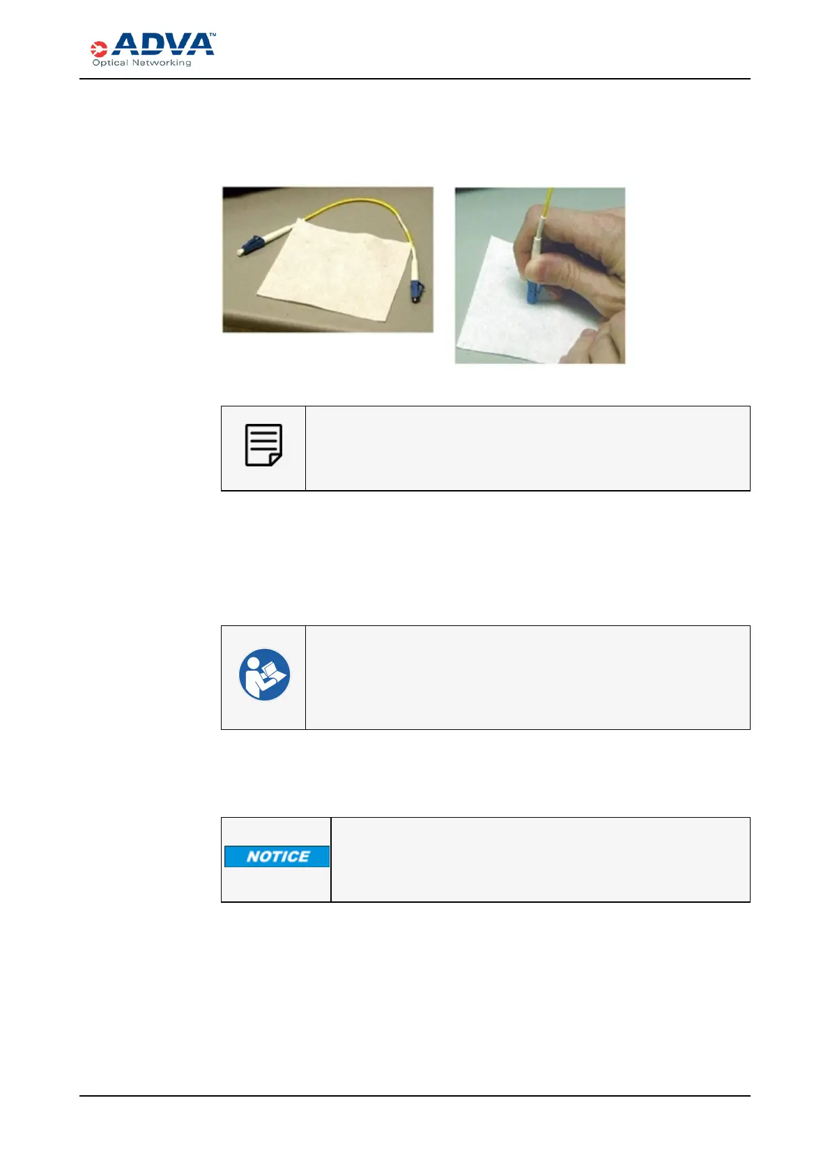 Do not scrub the fiber against the wipe. Doing so could cause scratches