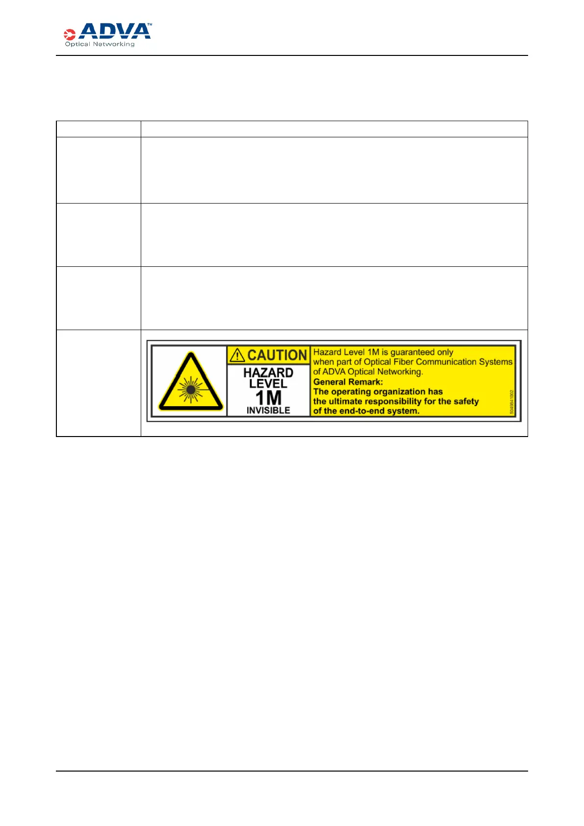 Description Indicates that the accessible laser radiation at points of disconnection within the FSP 3000