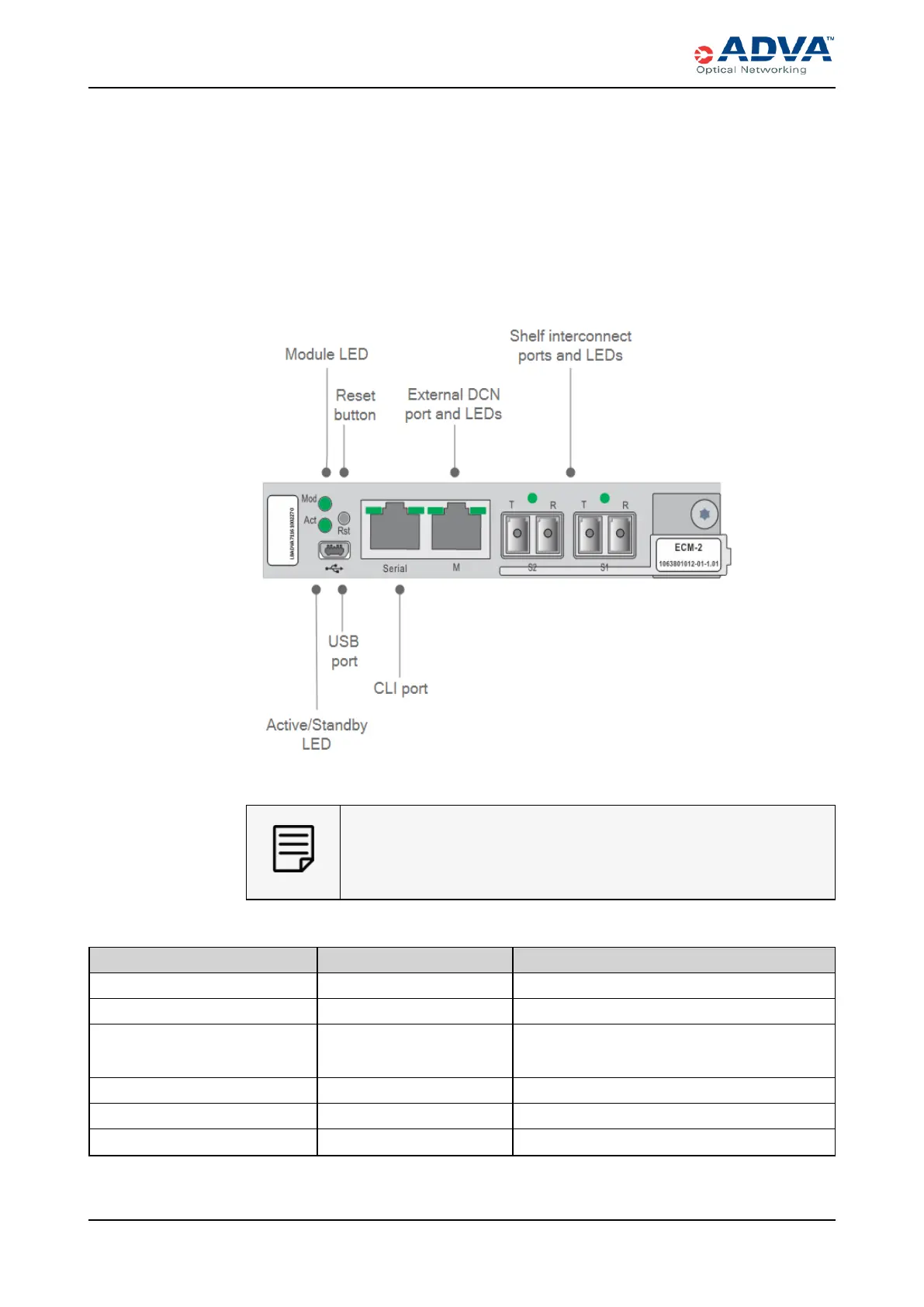 The element controller module (ECM-2) is the shelf controller module, supporting the