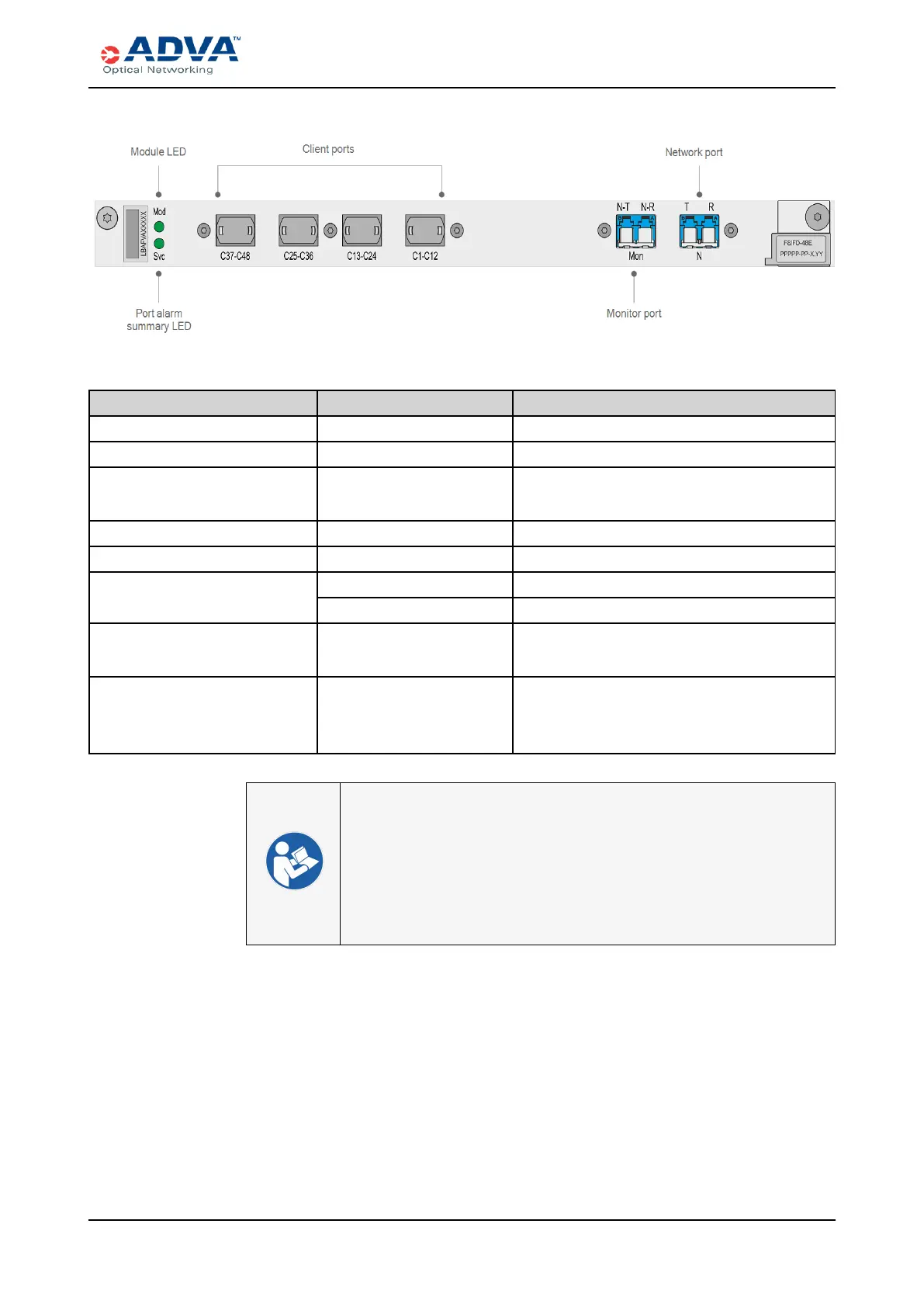 Four MPObi-directional client ports — Input and output for 48 C-band channels