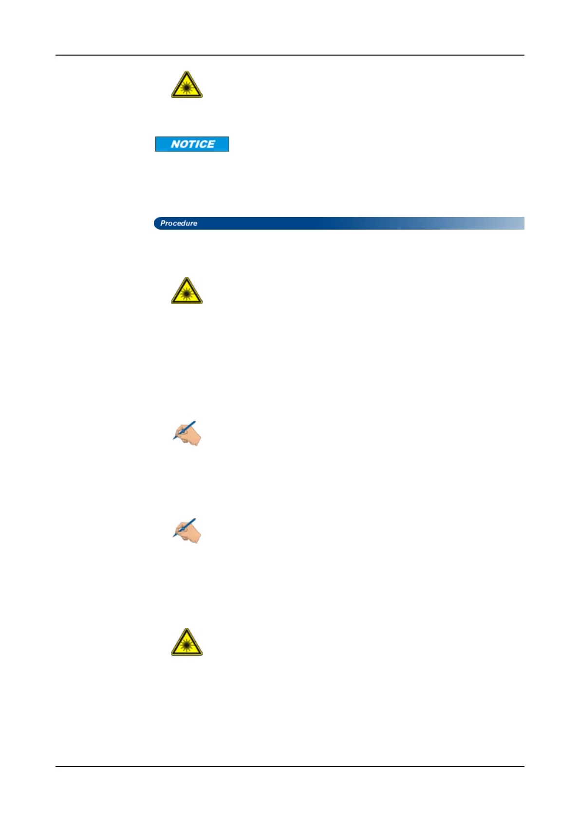 Raman amplifier to disabled before removing an optical cable. Failure to disable the