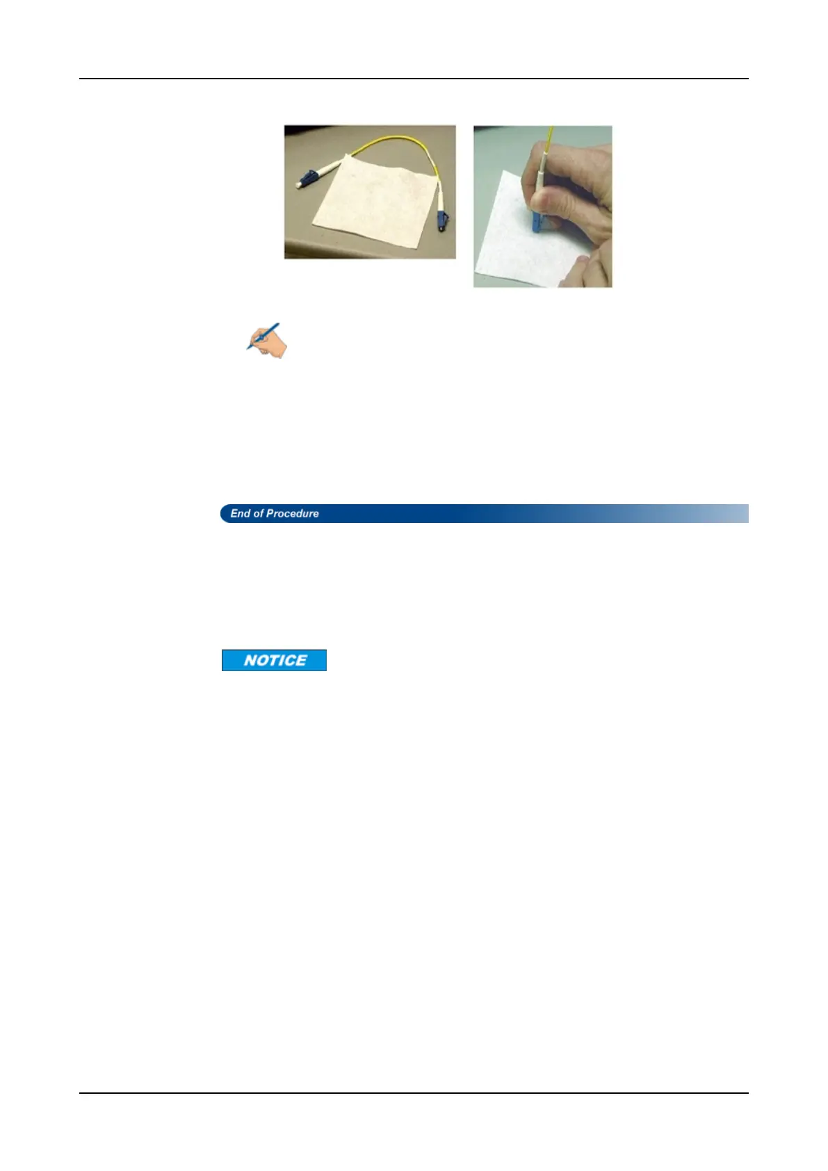 Do not scrub the fiber against the wipe. Doing so could cause scratches