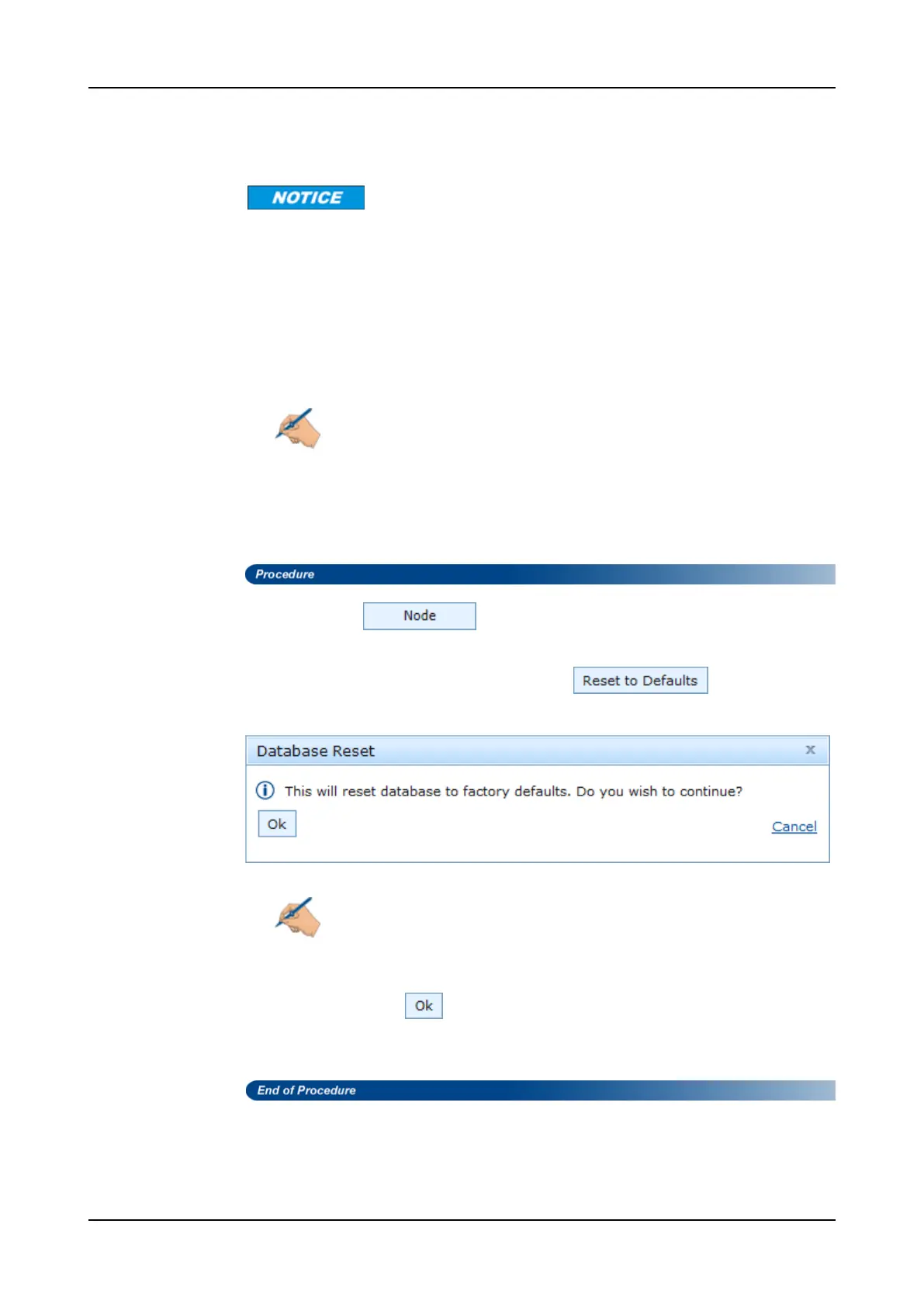 factory defaults does not affect traffic. However, rebooting the NCU after the database