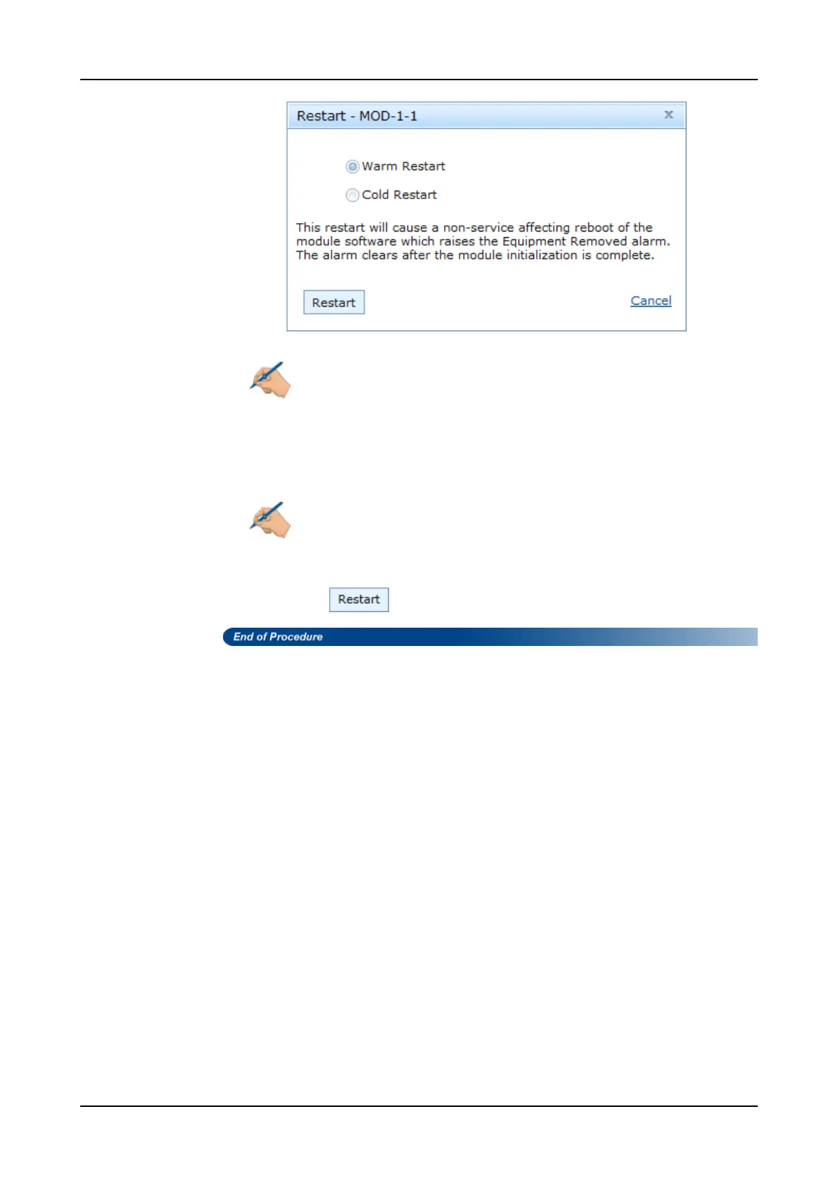 Step 4 If the module offers multiple restart options, select the restart type you wish to