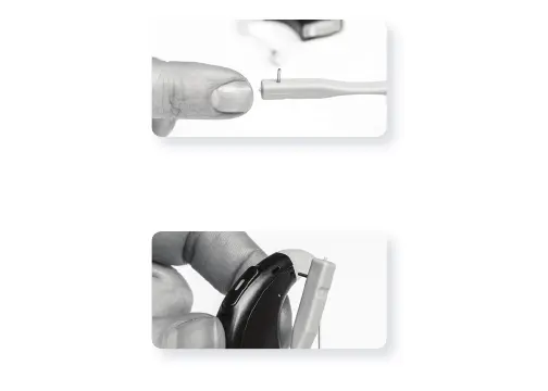 Line up the pin with the hole in the earhook and gently push it through the hole. The