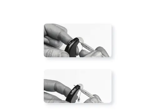 Align the pointed end of the tool with the hole on the sound processor that contains