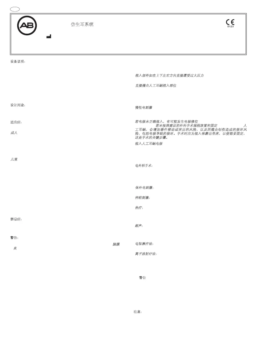 • 已接获报告,在使用本系统和其他人工耳蜗的患者中发生了细菌性