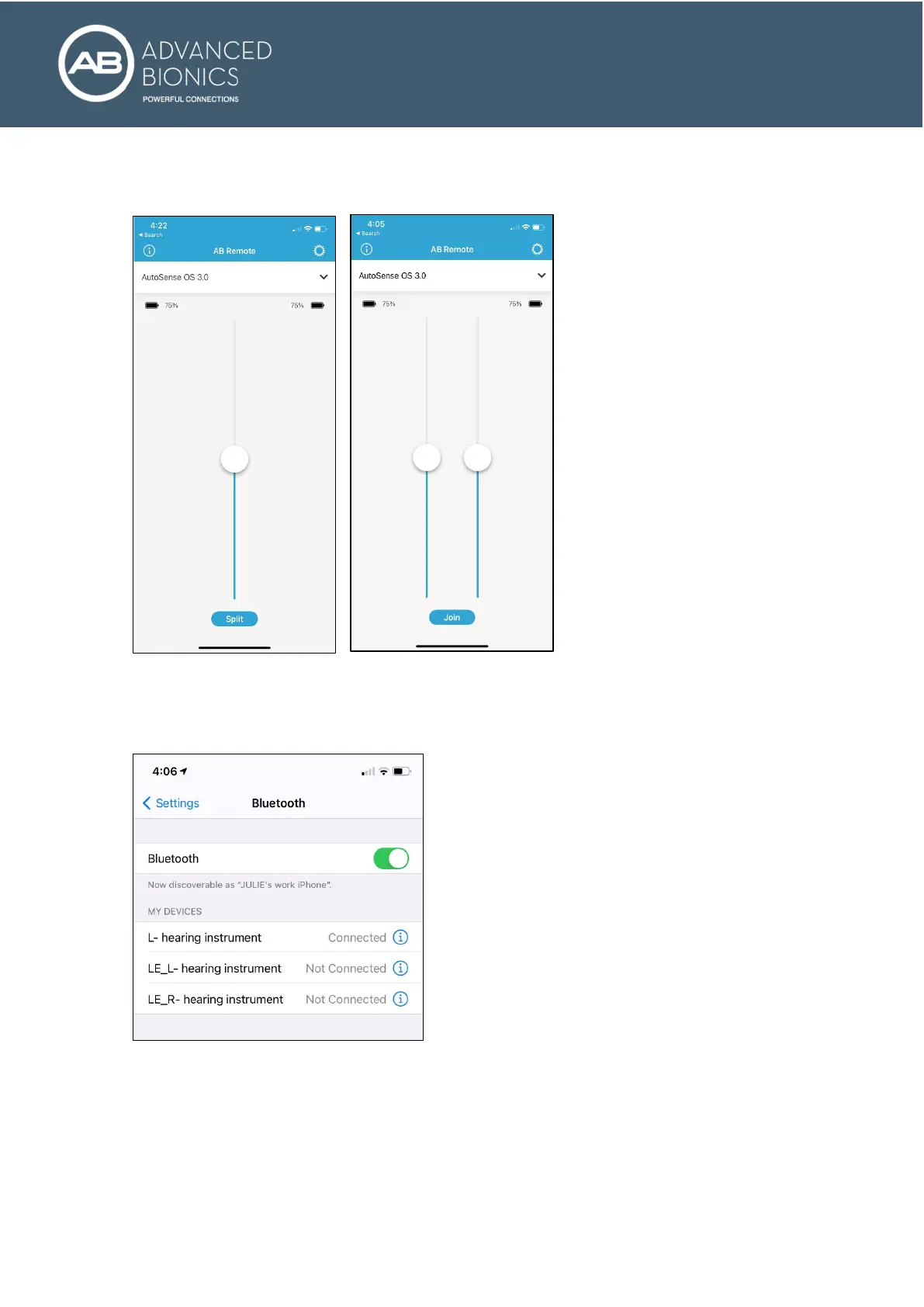 2. Once the devices are connected in the AB Remote Mobile App, the Bluetooth pairing(s) in the phone’s