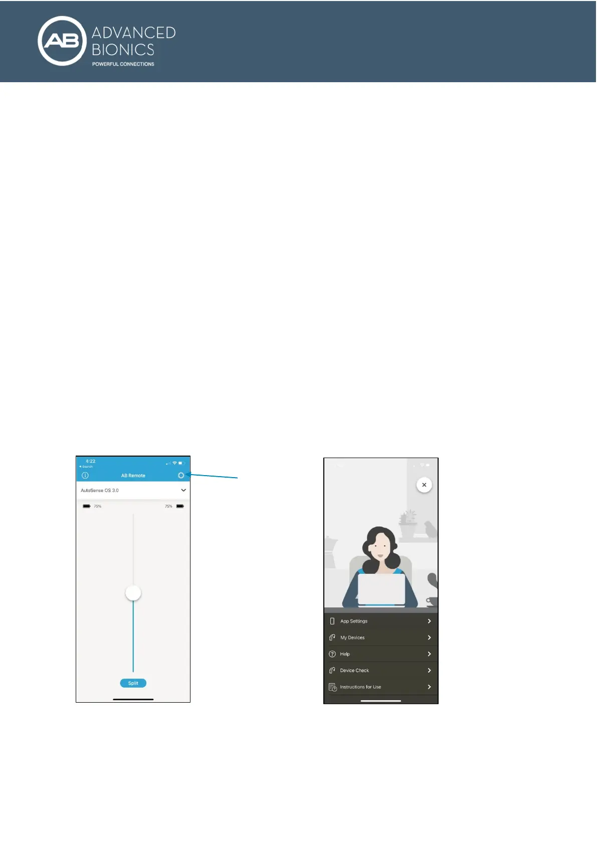 1. Open the AB Remote Mobile App and select the gear icon in the top right corner, then select “My