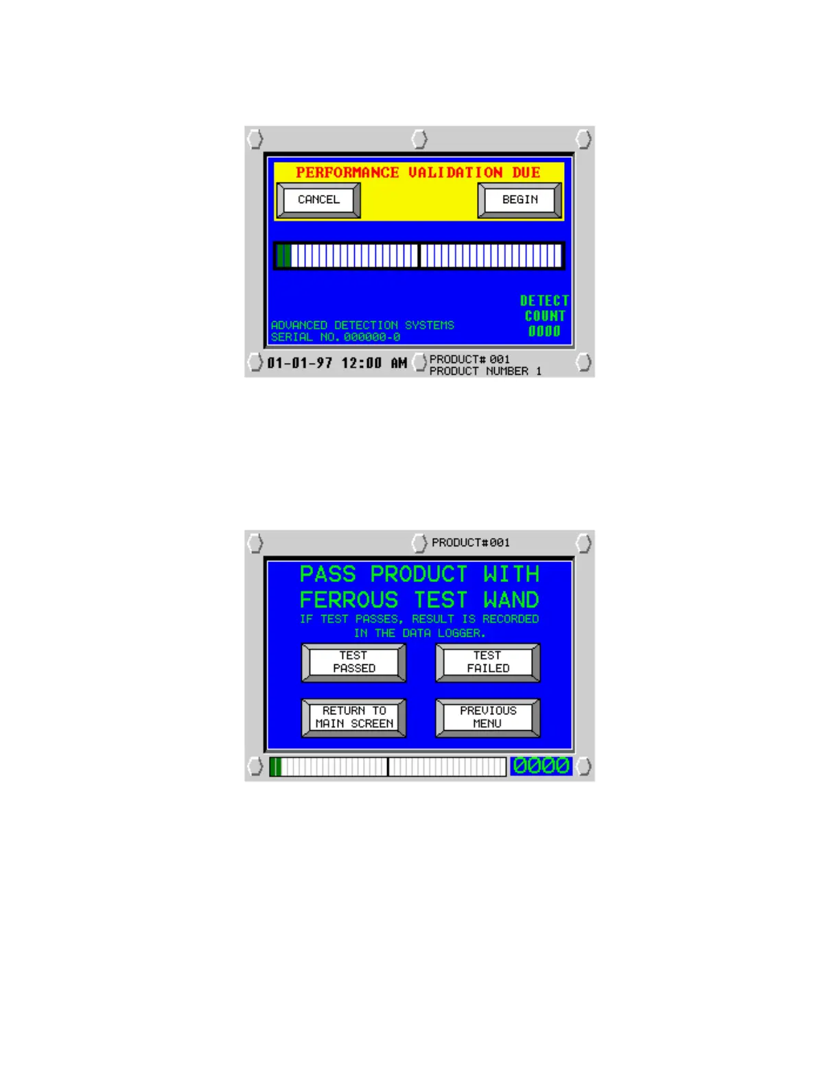Test the product with the ferrous test wand. If a detection occurs press ‘Test Passed’. If it did not or an