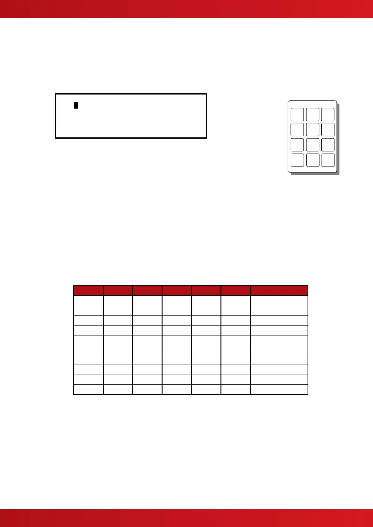 The following table shows the numbers, characters and symbols assigned to each button on the keypad.
