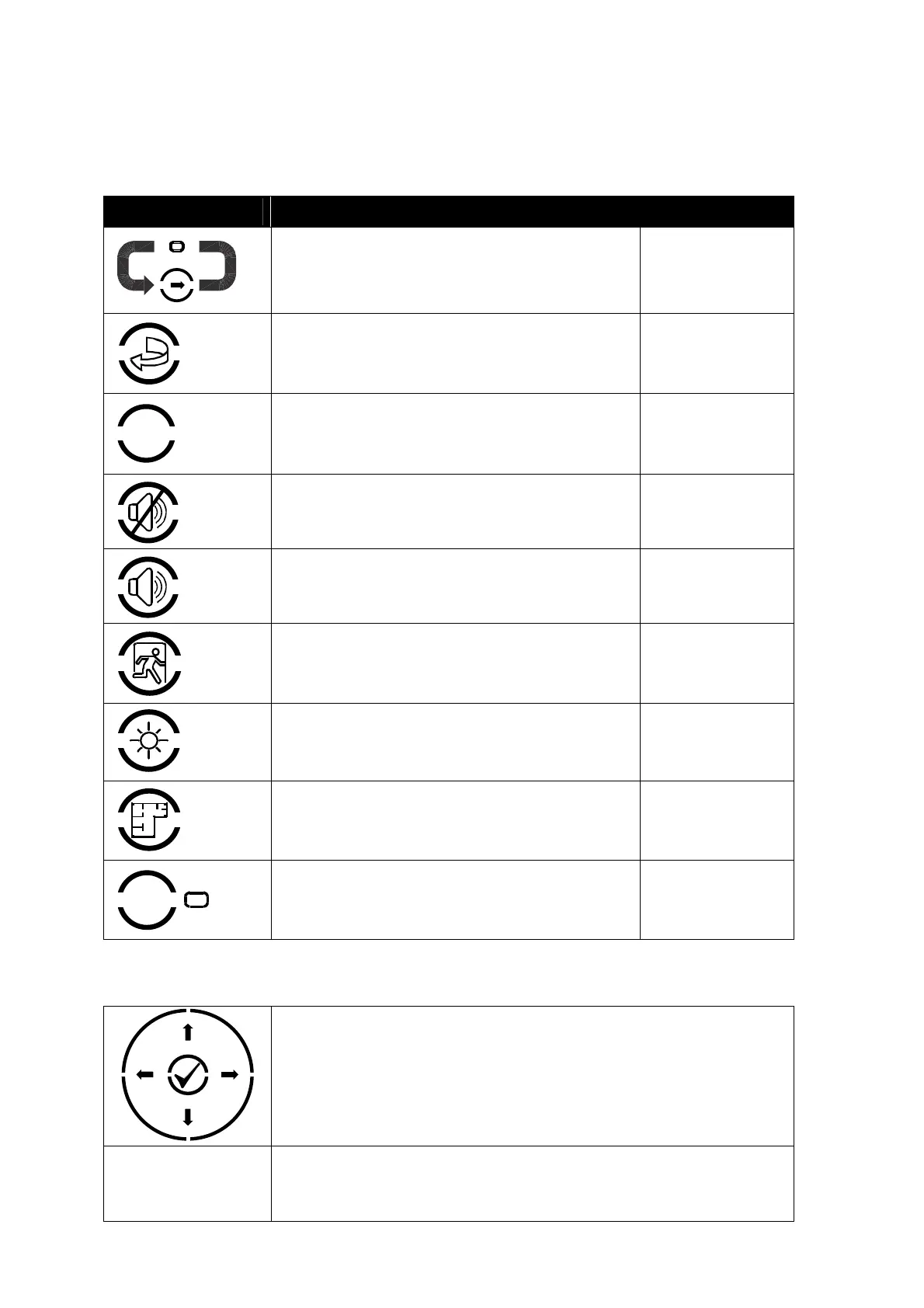 The following table contains a list of all of the control button functions available. The buttons