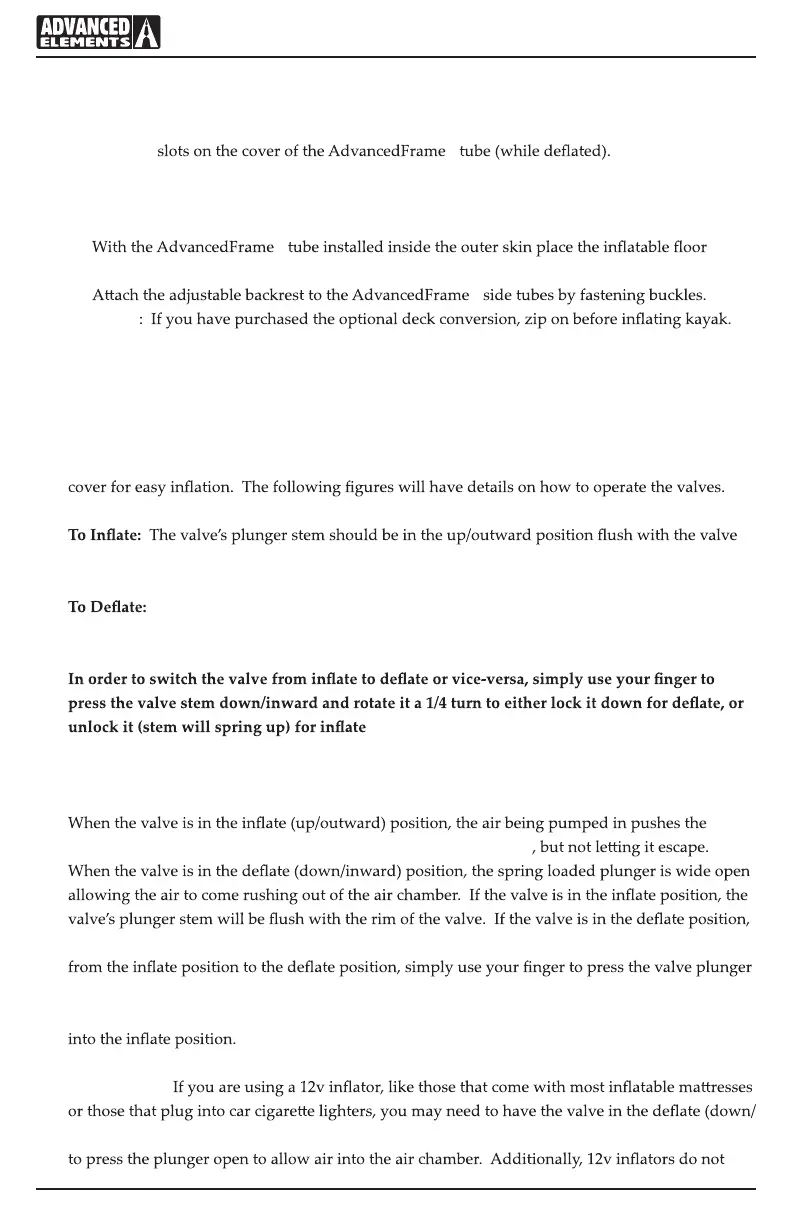 Advanced Elements AdvancedFrame® Convertible kayak uses the following valves. The