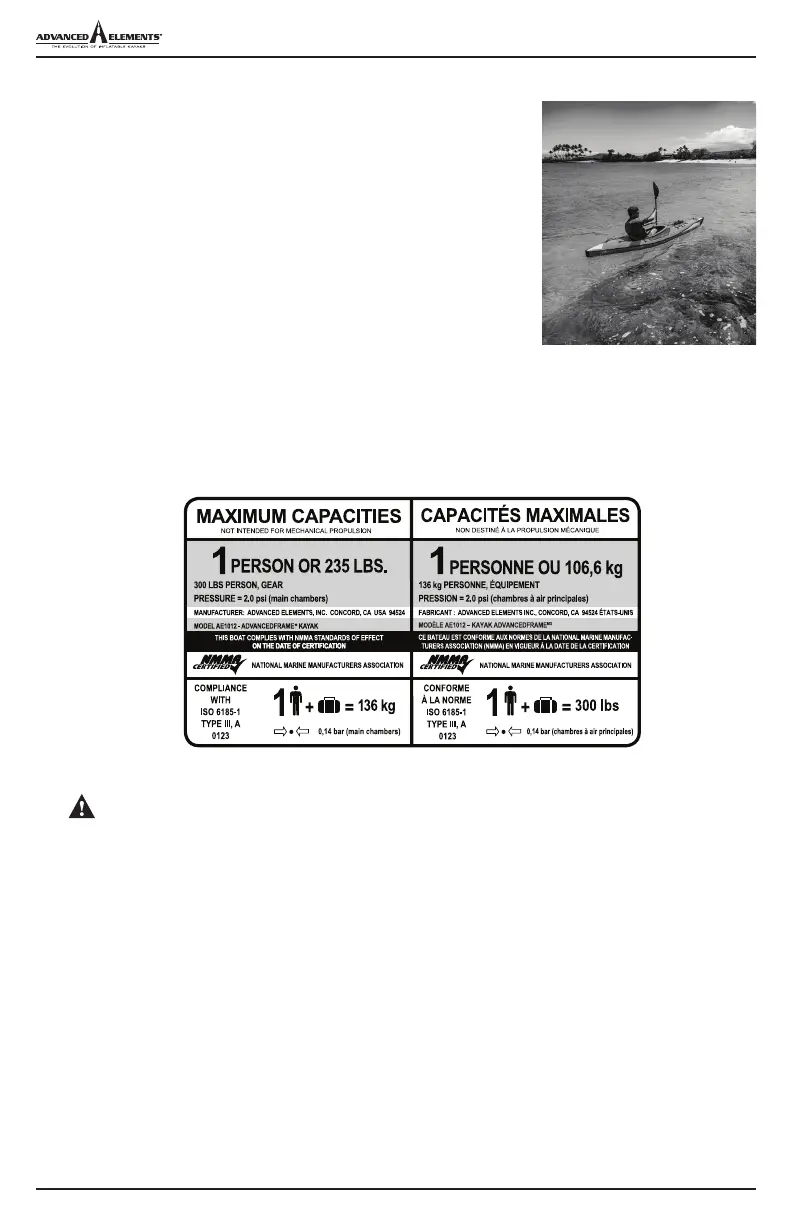 kayak. Les places assises acceptables déterminent le nombre de passagers et non la capacité de