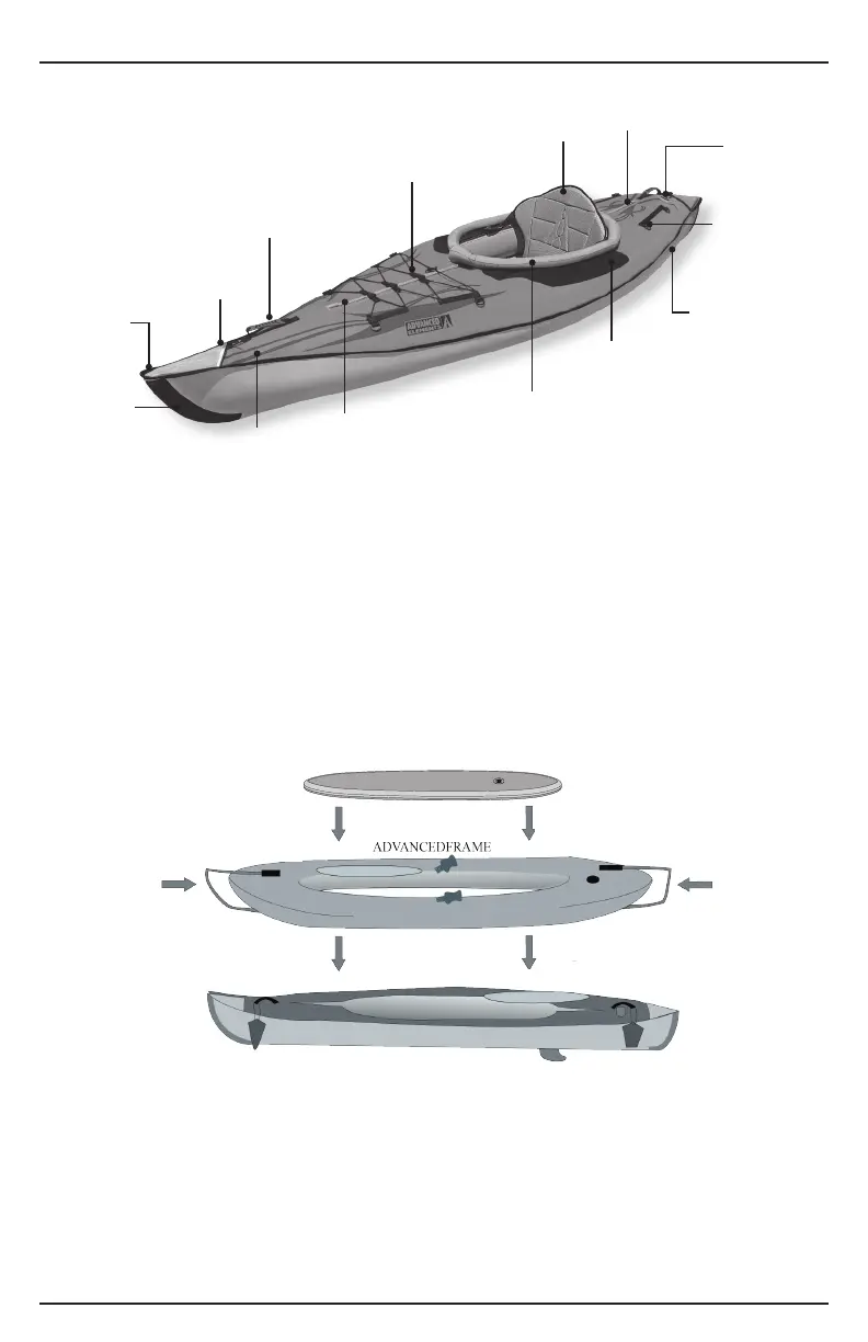 1. Votre kayak AdvancedFrame a été préassemblé en usine. Toutefois, si vous le démontez, vous