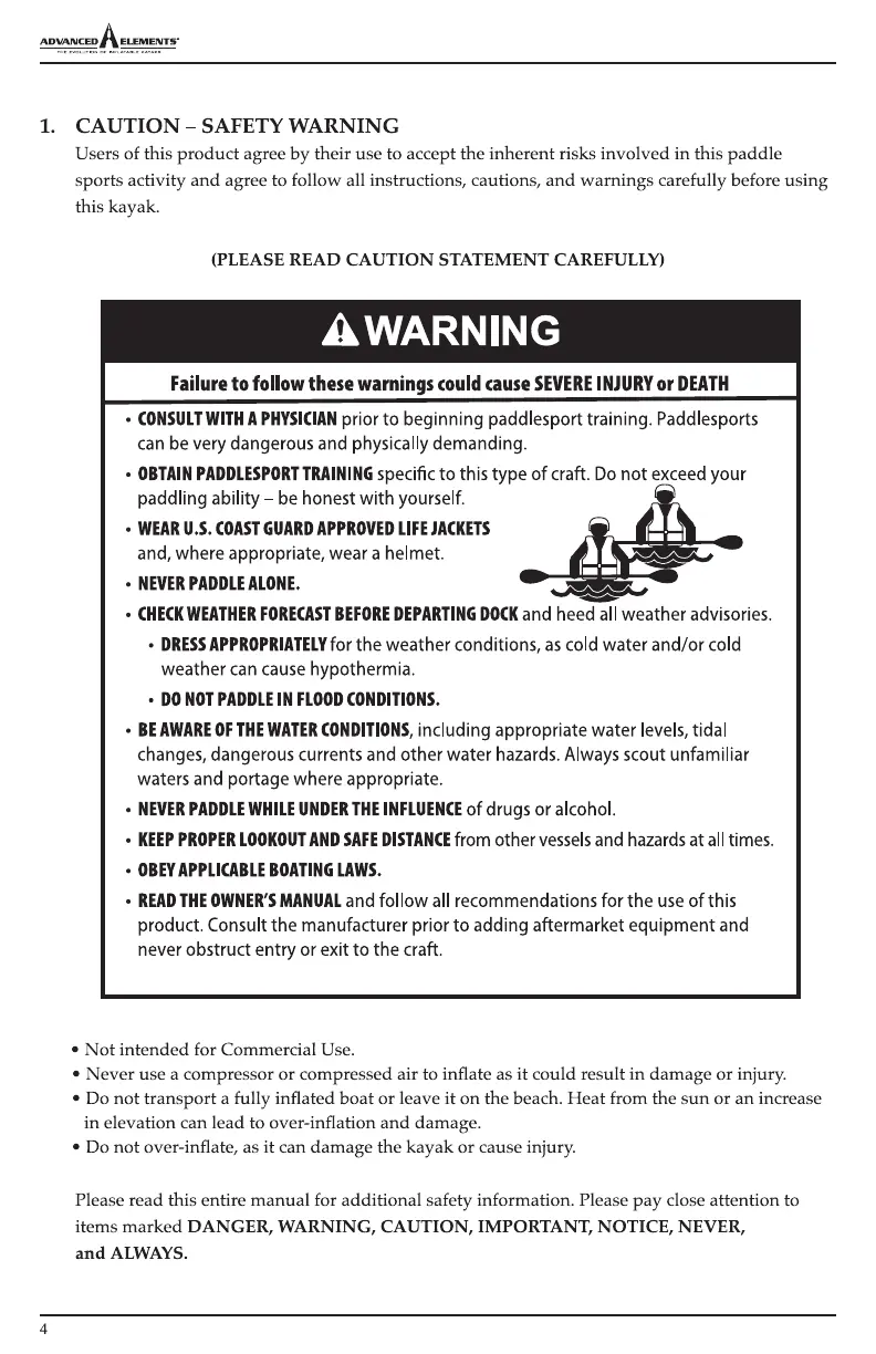 Advanced Elements ADVANCEDFRAME ELITE - Safety Warnings and Boating Guidelines