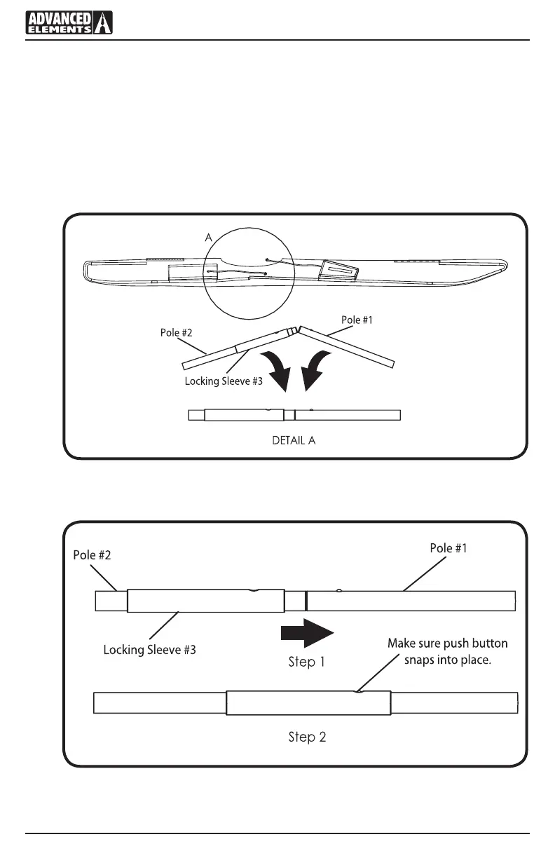 poles #1 and #2 is in the middle of Locking Sleeve #3. Align the hole on Locking Sleeve