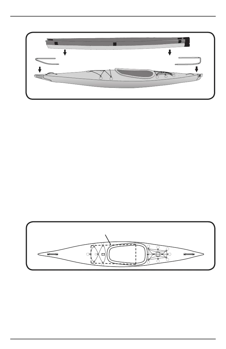 You can use the front thwart alignment line, printed on the inside of the kayak, to align the