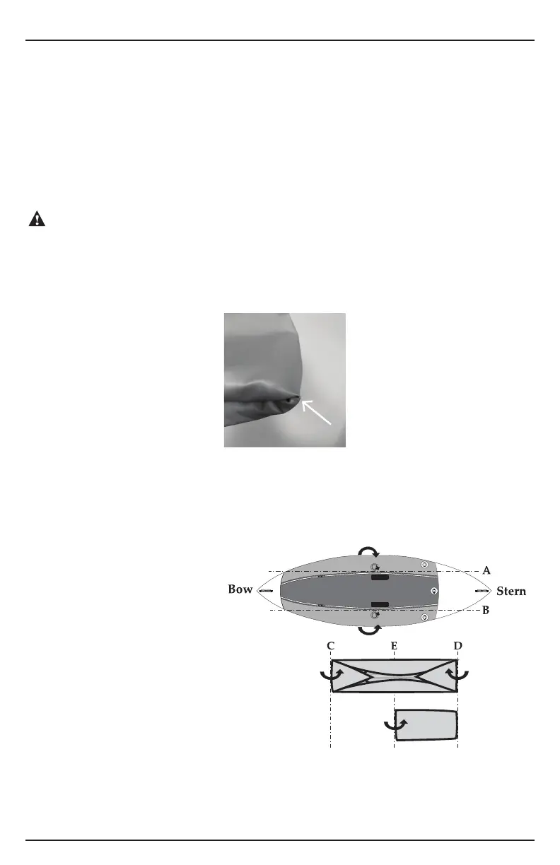 Caution: When the kayak is deated and folded up, creased edge points at the ends of the folds