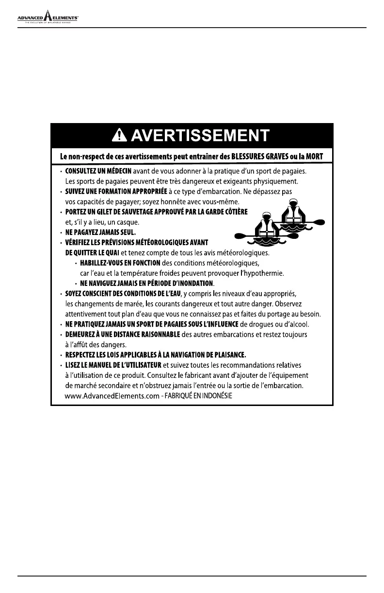 les précautions et les avertissements avant d’utiliser ce kayak.