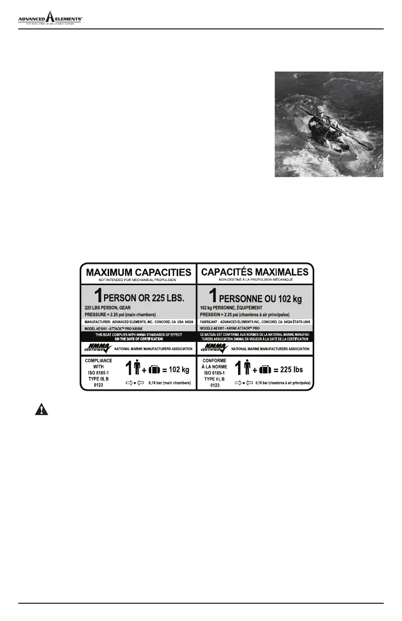 WARNING: Do not exceed the certied maximum capacities under any circumstances.