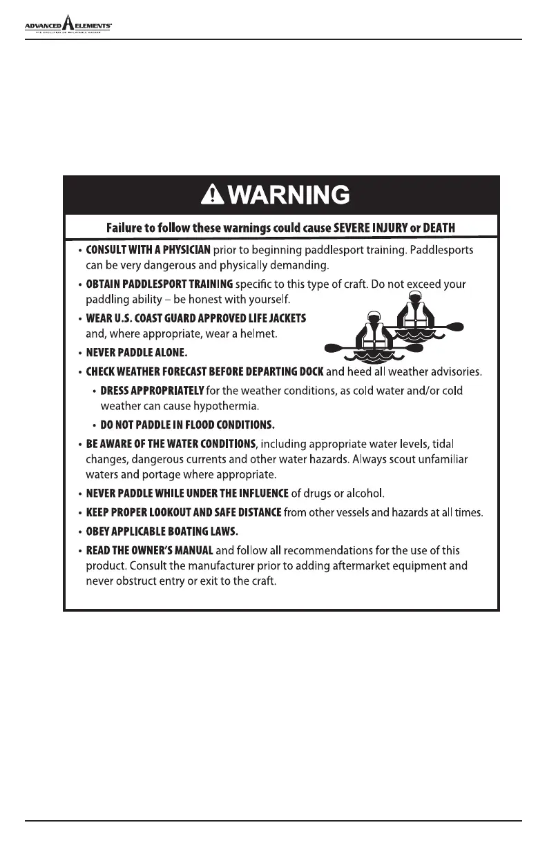 Advanced Elements STRAITEDGE ANGLER PRO - Safety Warnings and Precautions