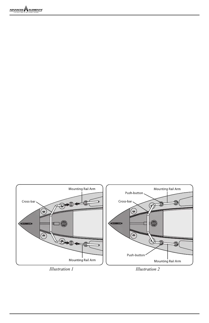 3. Socket the Cross-bar onto the Mounting Rail Arms. Make sure that the push-buttons pop