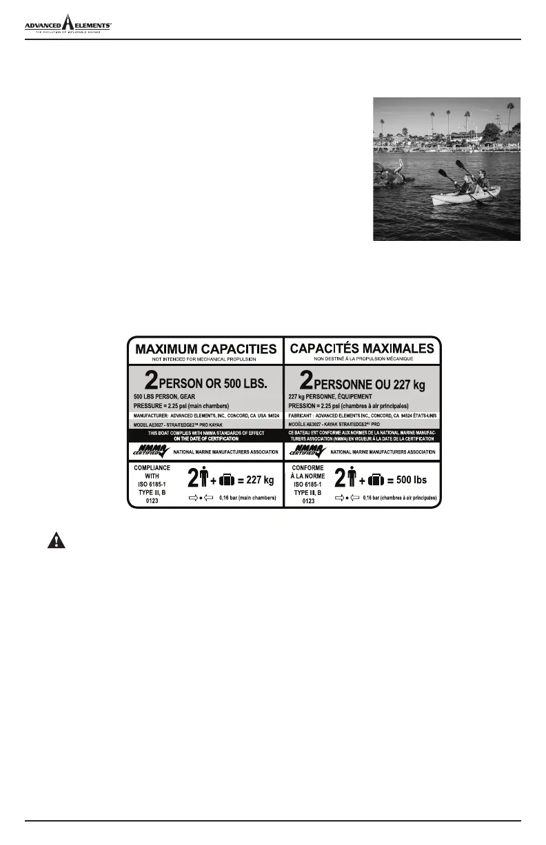 kayak. Les places assises acceptables déterminent le nombre de passagers et non la capacité de