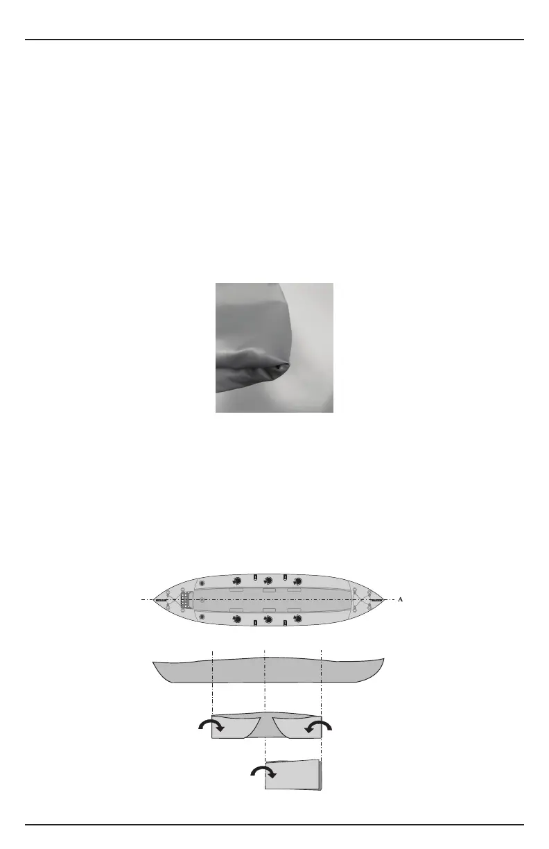Attention : Lorsque le kayak est dégoné et replié, les points de pliage situés aux extrémités des