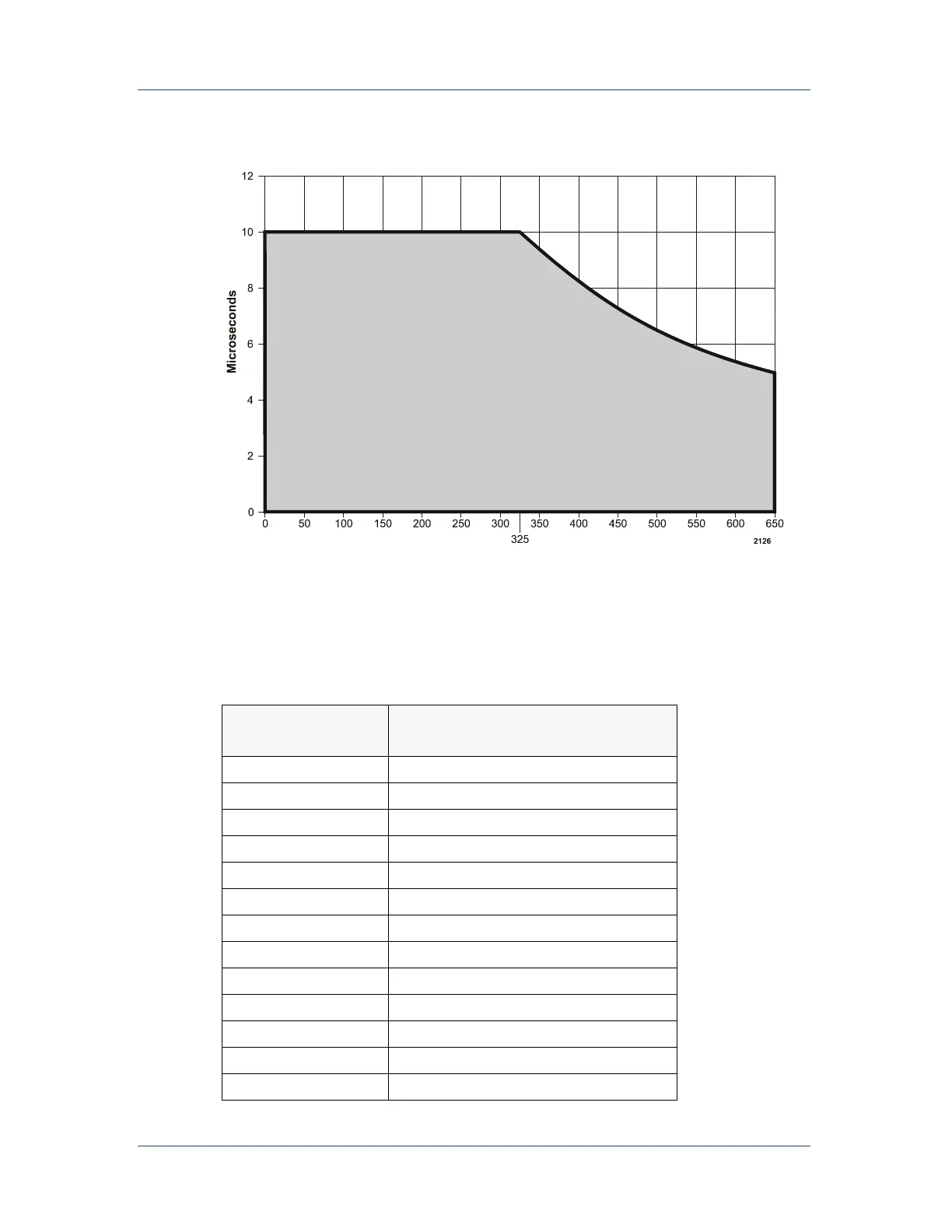 Advanced Energy Pinnacle Plus+ - Figure 3-2. Pulse Reversal Time as a Function of Voltage Limit (V-Limit); Table 3-5. Reverse Time as a Function of Voltage Limit (V-Limit)