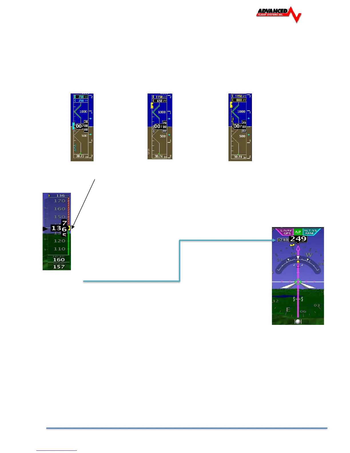 • Upon passing through 100 feet of the Selected Altitude, the Bug changes from Cyan to White.